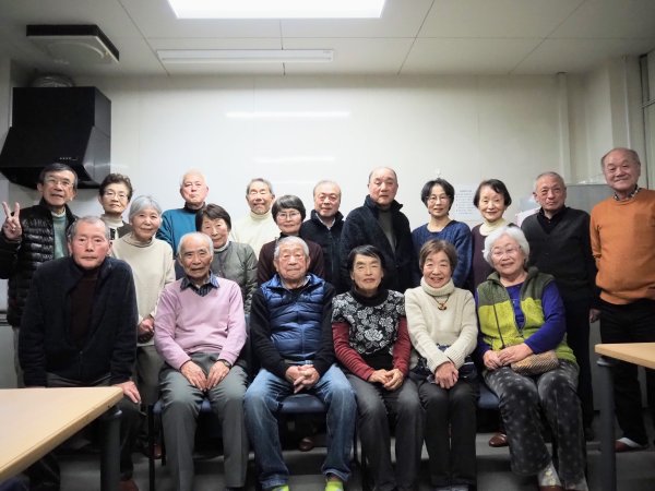 時と場所をワープし、新年会での集合写真 |